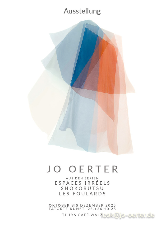 Ausstellung aus den Serien Les Foulards, Espaces irréels und Shokobutsu in Tillys Café von Oktober 2025 - Januar 2026 und im Off-Programm von Tatorte Kunst 2025.